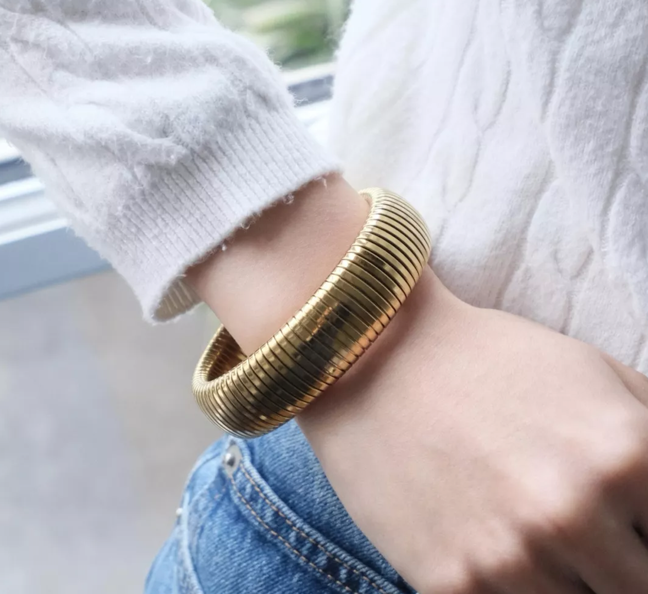 Ce bracelet jonc rétro est un véritable must-have pour donner un coup de peps et d’élégance à vos tenues. Son aspect flexible apporte un petit air rétro et intemporel.