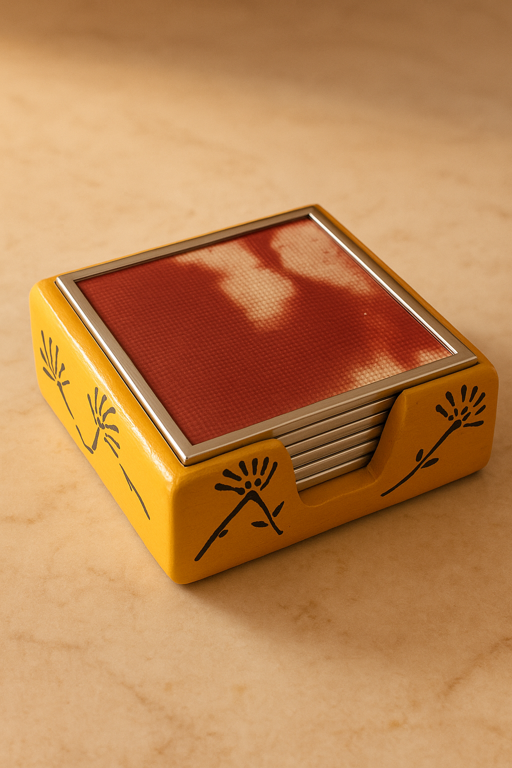 Inspiré de la fleur d’hibiscus et des moments de partage autour d’un verre de bissap, ce sous-verre artisanal allie élégance et tradition.