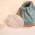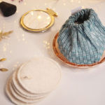 Composition : Lot de 5 cotons démaquillants (1 face nettoyante et 1 face velours) + 1 bourse de transport en Faso Dan Fani (tissu tissé au Burkina Faso et recyclé)